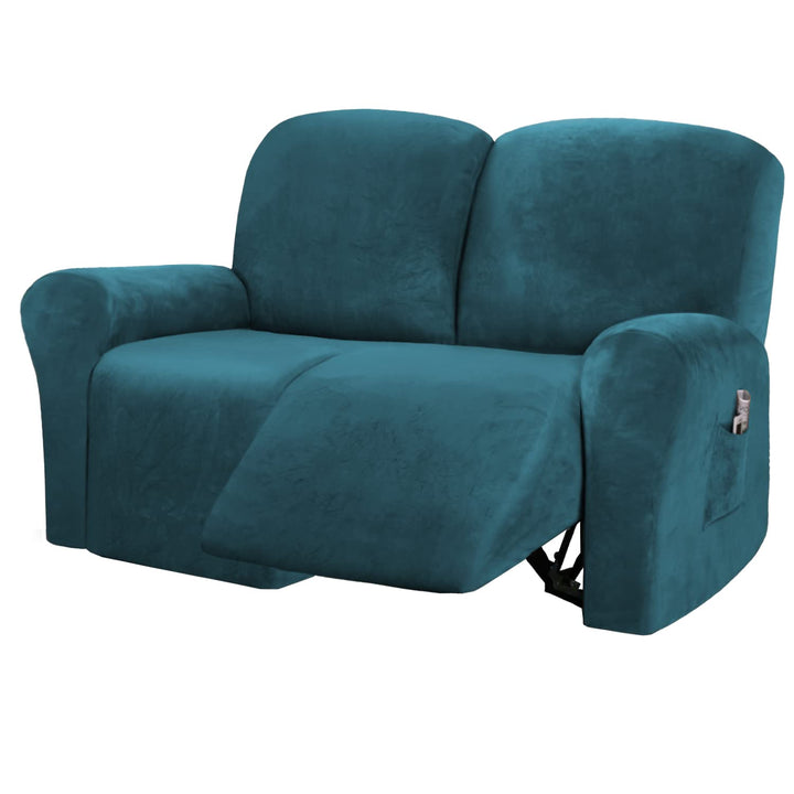 *[6-PIECE STYLE]: This innovated recliner slipcover is 6 Piece style, including 2 arm pieces,2 center back of seat pieces and 2 center back of cover pieces which will provide all-round protection. Best fit sofa 48-65 inches wide (outside arm to outside arm, straight across). with right side pocket and continuous footrest. Each seat has two elastic loops at the back corners to be pulled through to the back of the recliner.