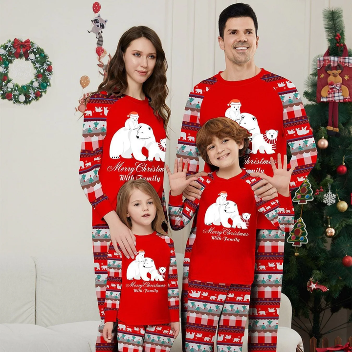 White Polar Bear Printed Family Matching Christmas Pajamas Sets